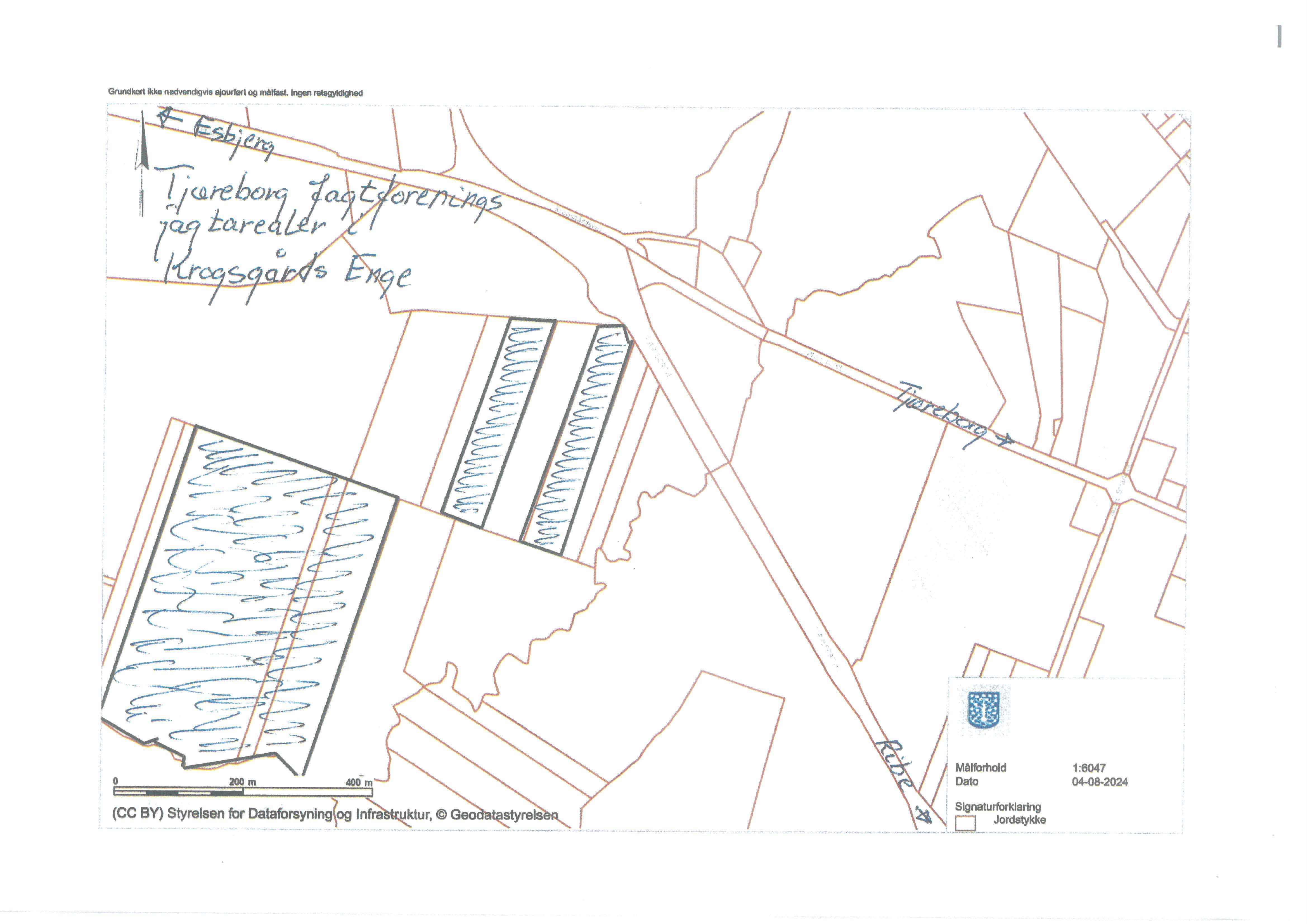 Kort over jagt i Tjæreborg enge
